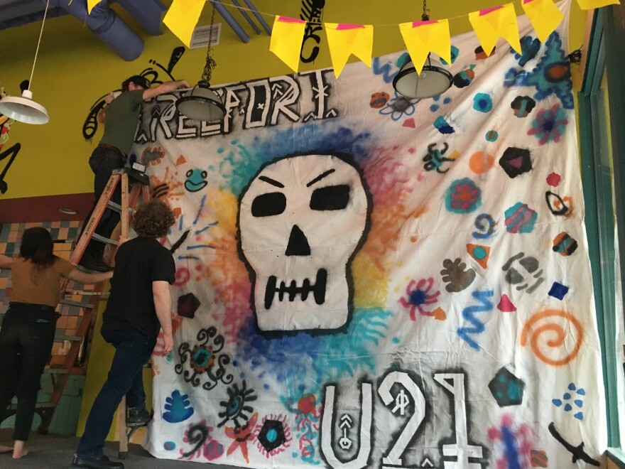 About a dozen teenagers are helping set up a stage in a burrito shop in downtown Boise. (The salsa bar is stage right.) Some are stringing decorations from the ceiling and walls, in preparation for the slew of bands they'll host during Treefort Music Fest.