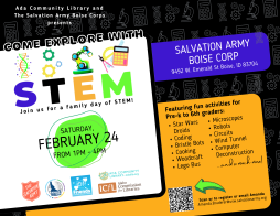 The Salvation Army in collaboration with the Ada community library would like to invite you to a fun filled afternoon of STEM. This free community event will have several STEM related booths plus exciting guests!
