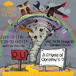RU A Friend of Dorothy’s? “ A Burlesque & Drag musical” is a glitter-soaked, camped-up reimagining of The Wizard of Oz featuring characters you already love and lesser known characters finding their way into the spotlight, taking you all the way to the Emerald City!
