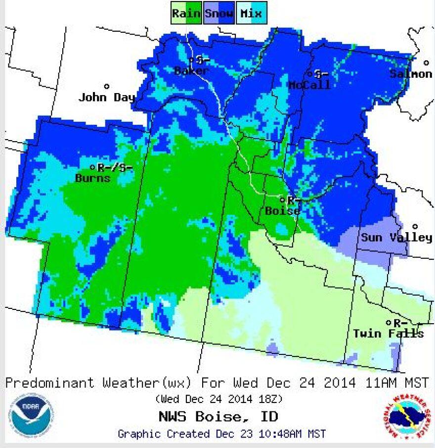 The forecast snowfall could make southern Idaho’s roads slick late Christmas eve, and into Thursday morning.
