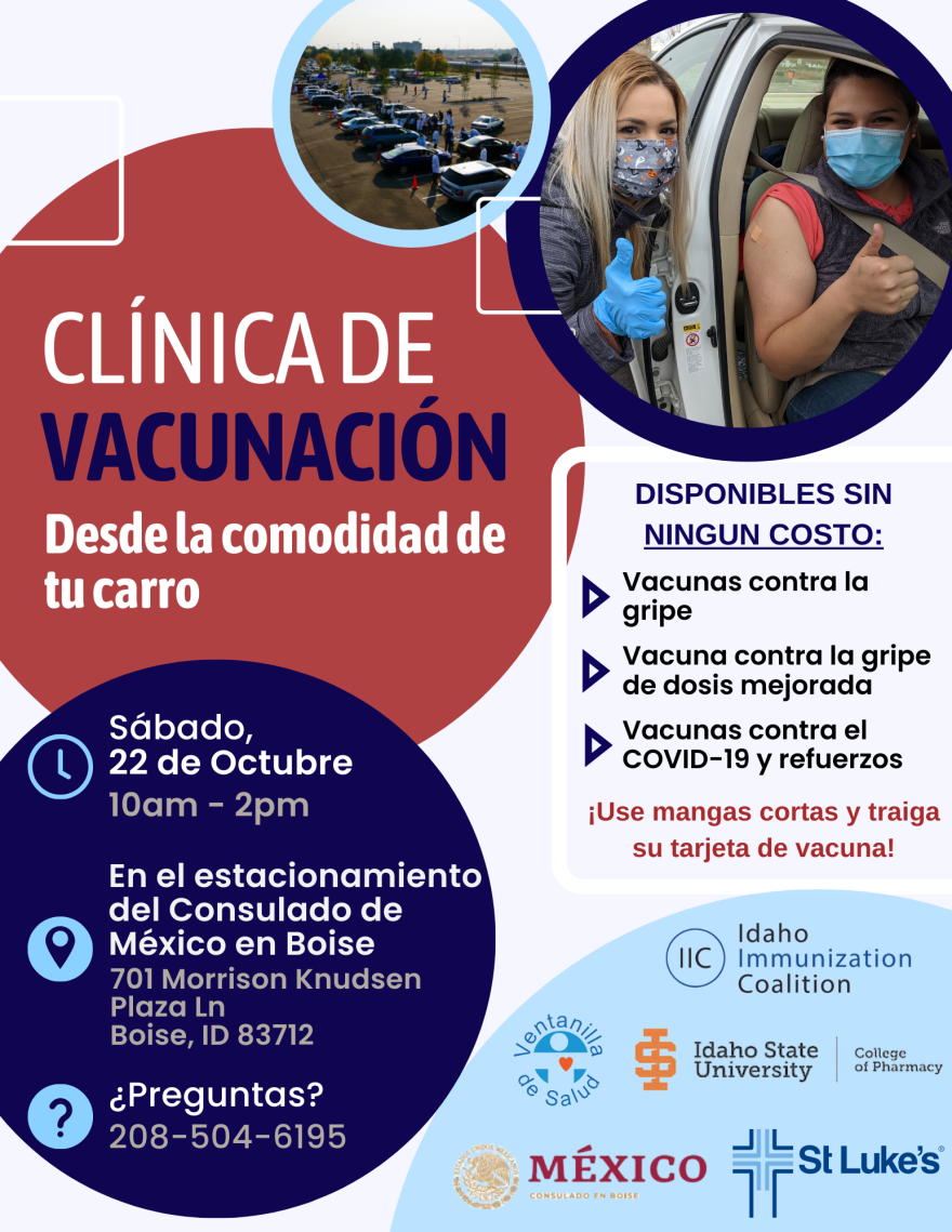 The drive-through clinic will take place from 10 a.m. to 2 p.m. in the parking lot of the Consulate of Mexico in Boise. The event is open to anyone, and flu shots, COVID-19 vaccines and boosters will be provided for free, with no need to have insurance.