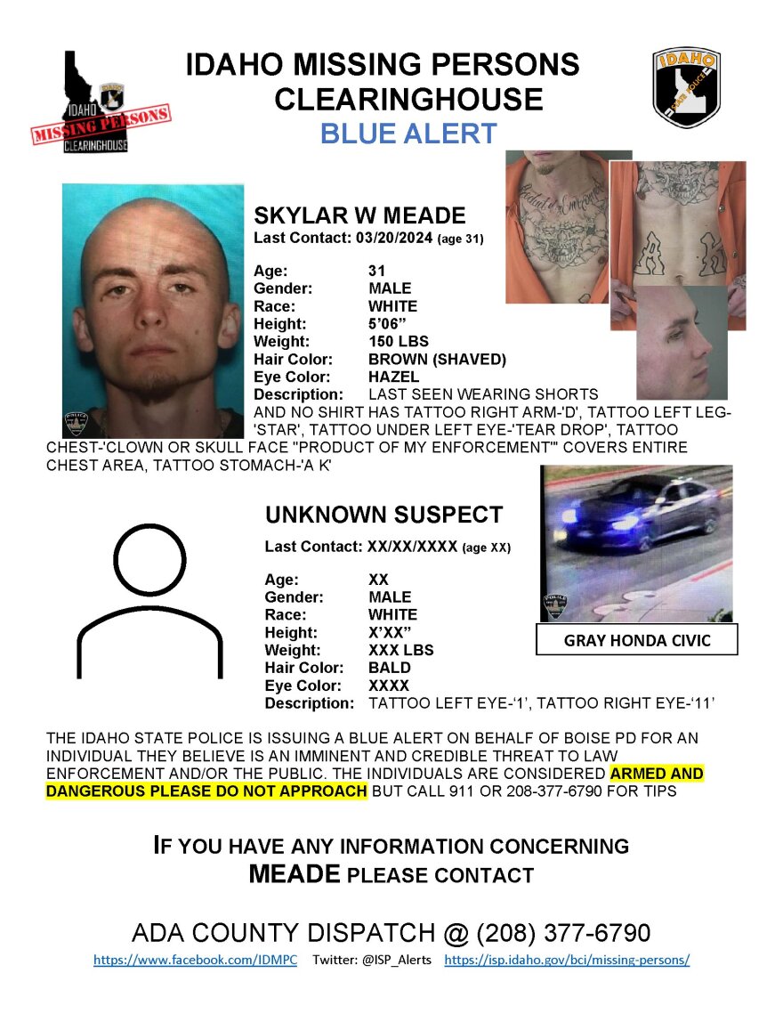 A preliminary investigation shows Meade and Umpenhour getting into a gray 2020 Honda Civic with the license plate 2TDF43U and leaving the area before Boise Police officers arrived.