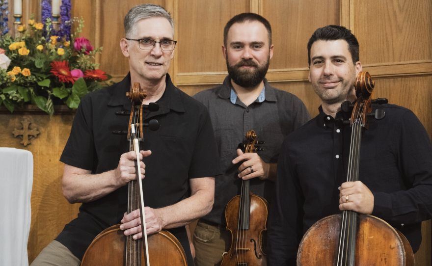 Brian Hodges on the cello, Geoffrey Hill on the violin and Kevin McTeague on cello, along with David Harrison with Canon for Music at St. Michael's Episcopal Cathedral, joined Idaho Matters to share a little music and talk more.